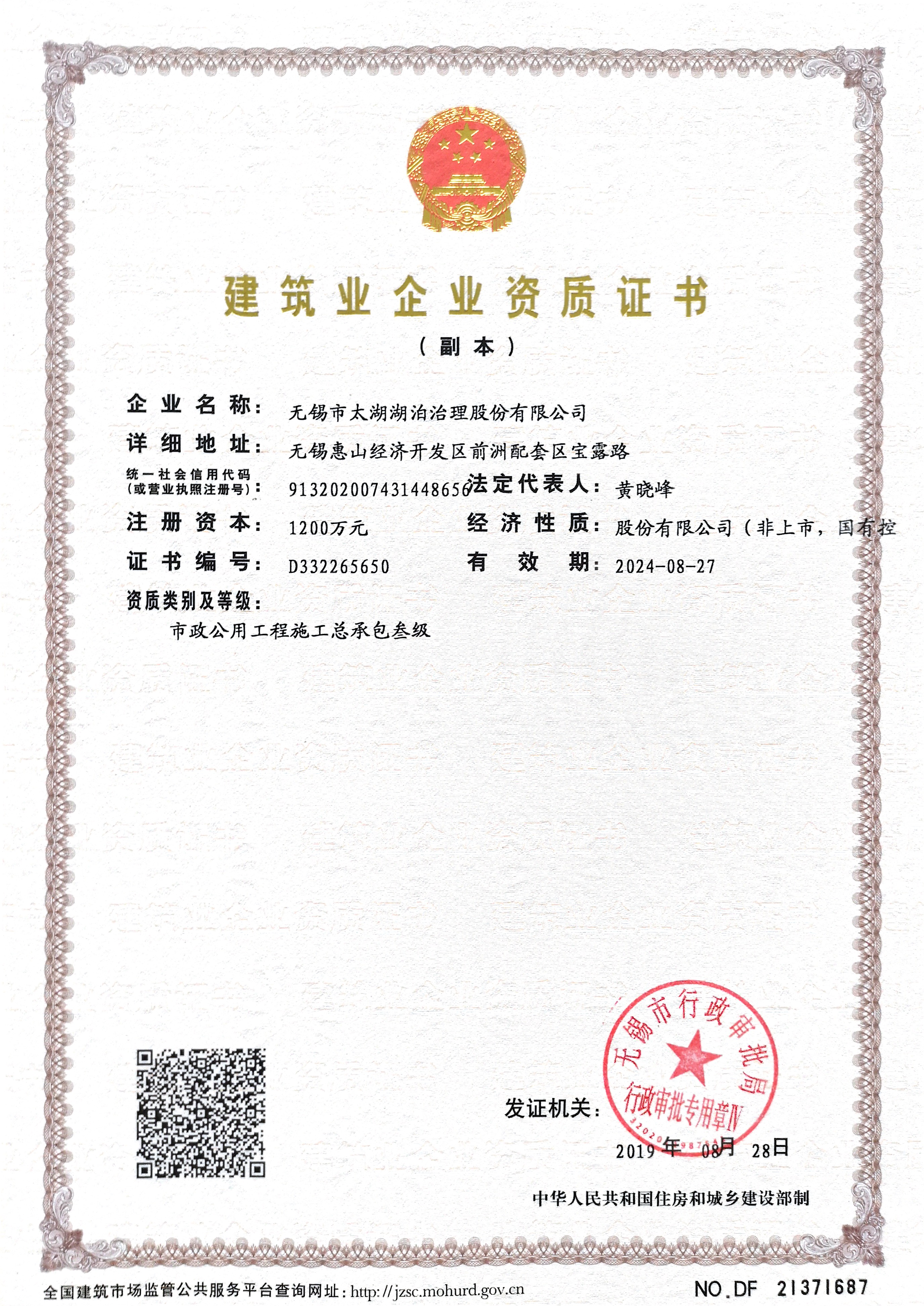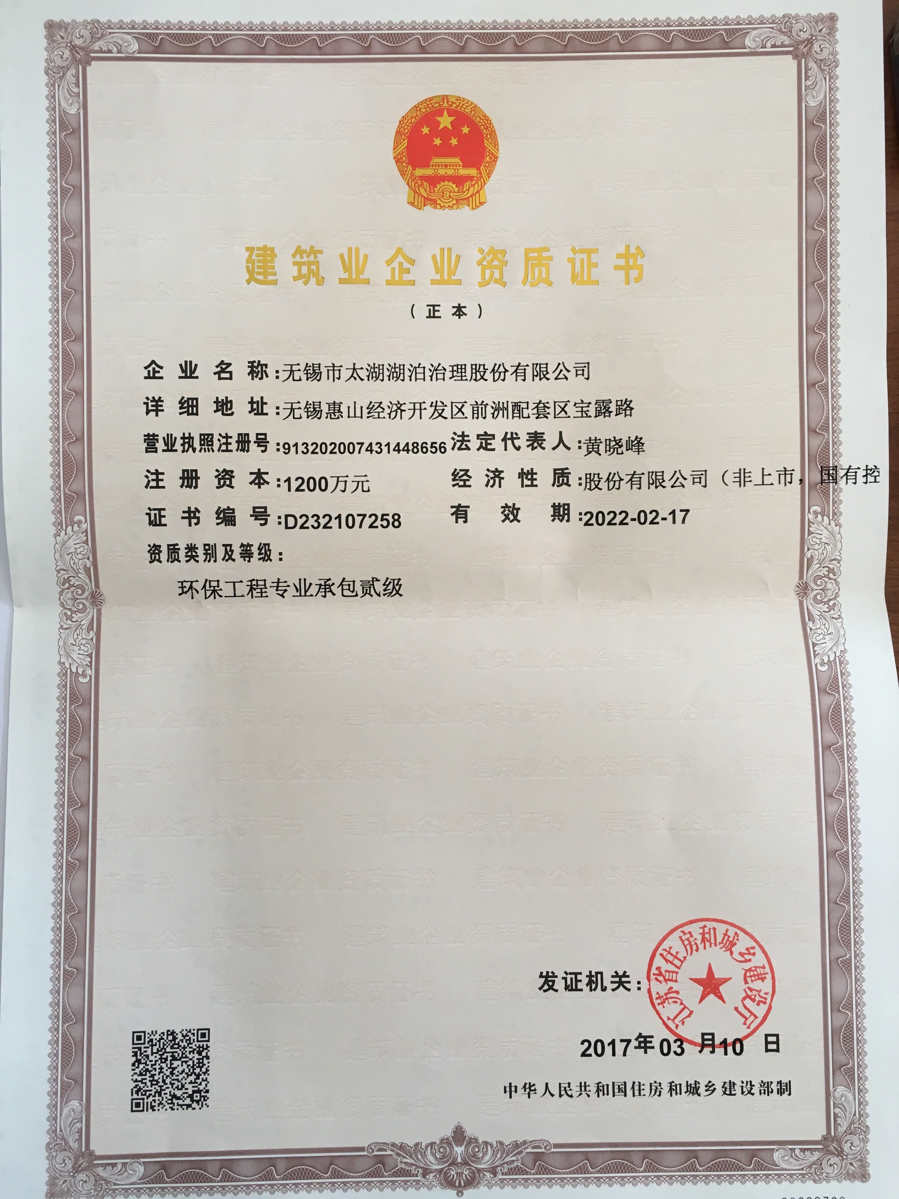 LEDONG.COM乐动体育(中国)科技公司荣升环保工程专业承包贰级资质